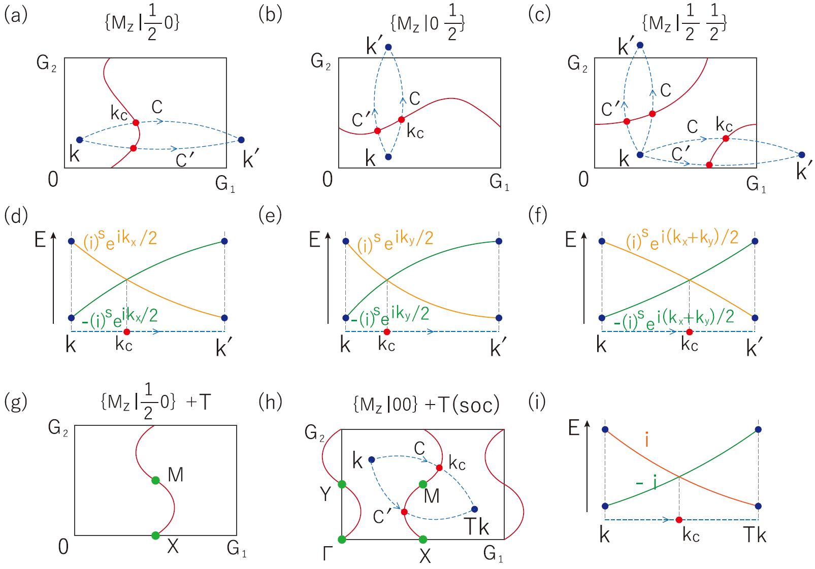 文章提出在固体中存在一种新的必然简并节线,与传统的必然简并节线不同,该节线偏离高对称路径,分布在高对称面上。因而具有很强的隐蔽性,文章将其命名为“隐藏必然节线态 (HENL)”。 HENL的小群没有高维不可约表示,因而无法利用传统能带简并理论去分析,其成因需要考虑对称操作本征值的演化问题。具体来说,滑移镜面本征值在经历一个倒格矢的整数倍周期演化后,会出现一个π的相位。这个π相位会改变了本征值的符号,从而导致了能带的交叉,进而形成了HENL。HENL的出现仅需一个滑移镜面操作,因而可以广泛地存在于磁性和非磁体系中。文章对528个磁层群进行系统性地研究,发现122个磁层群可以荷载隐藏节线态。此外,文章探究了有自旋HENL的独特物性。结果表明,考虑自旋轨道耦合(SOC)后,体系的自旋纹理表现出 “可保持自旋纹理(persistent spin texture)”的特性。这样的自旋纹理在长寿命自旋相关的输运中具有重要作用。