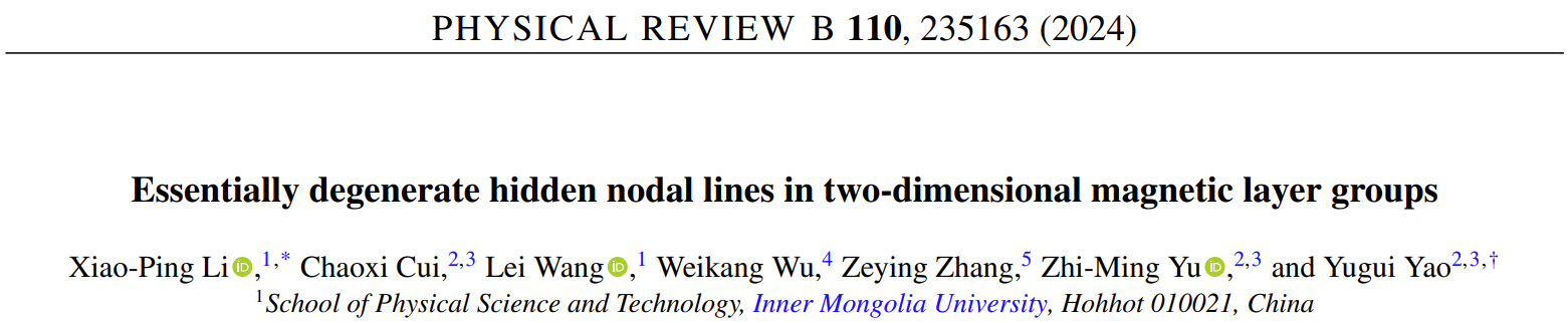 近日,ac米兰物理科学与技术学院李小平研究员团队在拓扑相的理论预言方面取得新进展,在物理学顶级期刊Physical Review B上发表题为“Essentially degenerate hidden nodal lines in two-dimensional magnetic layer groups”的研究成果。(论文链接:https://link.aps.org/doi/10.1103/PhysRevB.110.235163)。李小平研究员为论文的第一作者兼通讯作者,北京理工大学的姚裕贵教授为论文的共同通讯作者。ac米兰官网中文网站为论文第一完成单位。