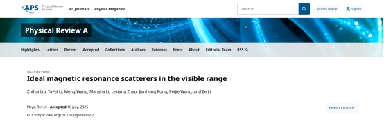 近日,ac米兰物理科学与技术学院青年教师李泽博士带领的原子分子光物理团队在磁光领域取得进展——首次揭示不对称双硅球颗粒在特定条件下可实现完美的磁光散射现象。相关研究成果以 “Ideal Magnetic Resonance Scatterers in the Visible Range” 为题,以快报(Letter)形式被原子分子光物理领域(AMO)国际著名期刊《Physical Review A》(该刊为 Nature 指数收录的学科卓越期刊)录用。