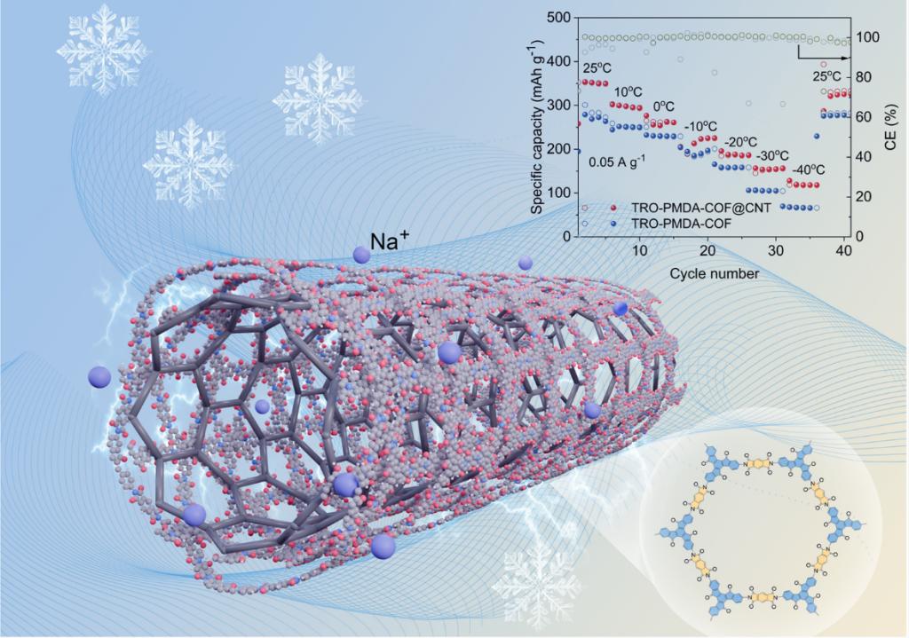近日,ac米兰官网中文网站能源材料化学研究院陈远研究员与华中科技大学王成亮教授联手共同在期刊Angew. Chem., Int. Ed.上发表题为 “Truxenone-based Covalent Organic Framework/Carbon Nanotube Composite for High-Performance Low-Temperature Sodium-Ion Batteries” 的文章(论文链接:https://doi.org/10.1002/anie.202511714)。陈远研究员、华中科技大学王成亮教授为论文共同通讯作者。硕士生杨双勤,吴静美为共同第一作者。ac米兰官网中文网站能源化学材料研究院为第一完成单位。