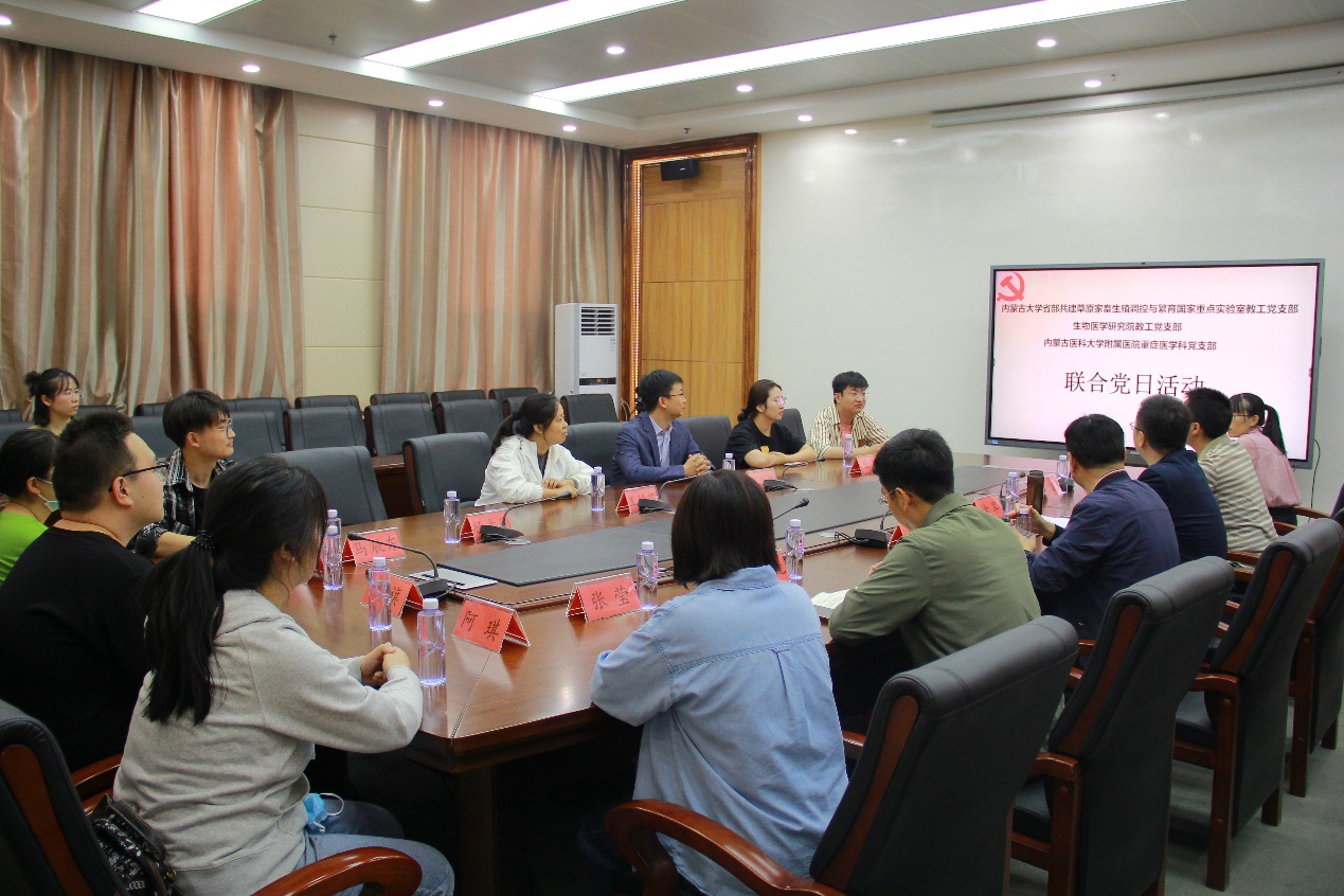 在全党开展党纪学习教育之际,4月25日下午,ac米兰官网中文网站省部共建草原家畜生殖调控与繁育国家重点实验室教工党支部、生物医学研究院教工党支部与内蒙古医科大学附属医院重症医学科党支部,在生命科学学院举办联合党日活动。